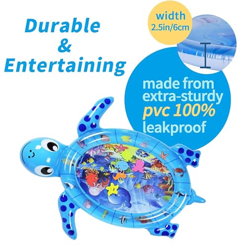 - ✅ Tummy time wate✅ Made from thickening PVC, the water play mat is designed to resist leaks and features a number of colorful foam fish inside.r mat for babies - Our inflatable tummy time water mat is BPA FREE and made from high quality Eco and child friendly PVC and odour free. The Water baby play mat is tested to make sure your baby is safe, comfortable and leakproof.
